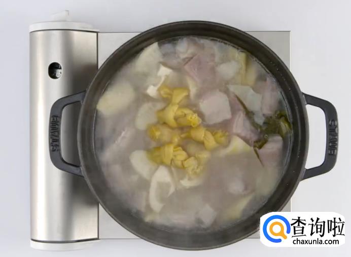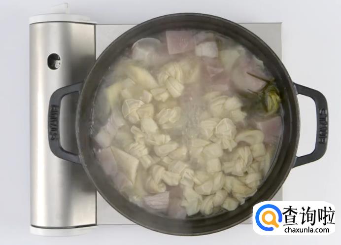 慢炖一小时后,放入百叶结。