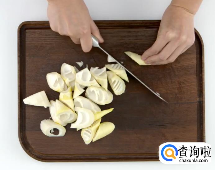 之后春笋切滚刀块。