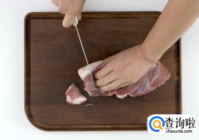 猪腿肉切块,焯水。