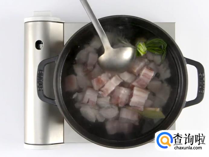 咸肉焯水。