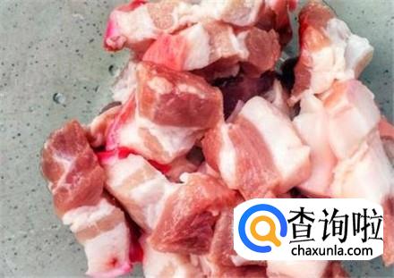 肥瘦相间的肉清洗干净,切成块,争取每一块都有肥肉和廋肉,这样做出来的红烧肉好吃。