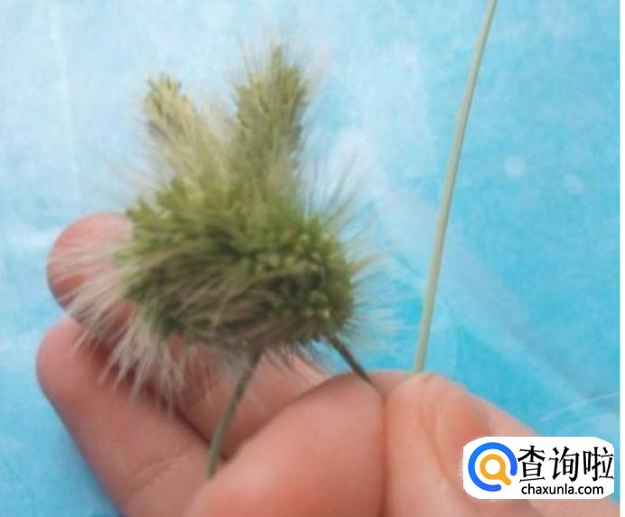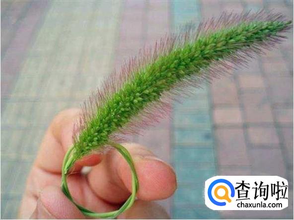 取另一根狗尾巴草,按如下图所示的方式,从杆部开始绕圈儿,直至将整个狗尾巴草绕完。