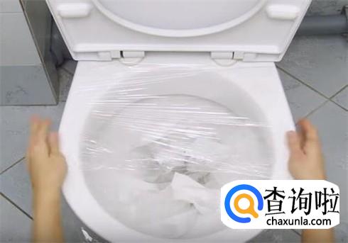 然后用保鲜膜把马桶周围包起来,越紧越好,注意一层一层的包好,一定不要漏气。
