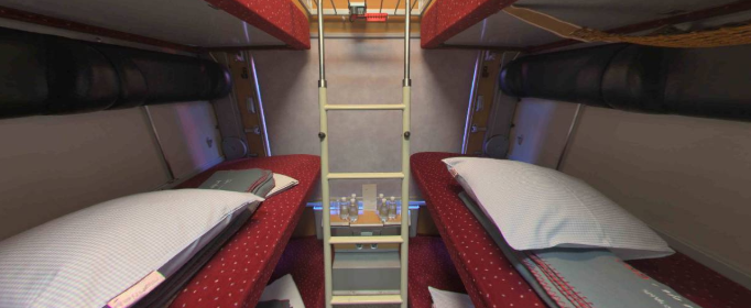 软卧一般每个包间内有4个铺位,分为上下两层。