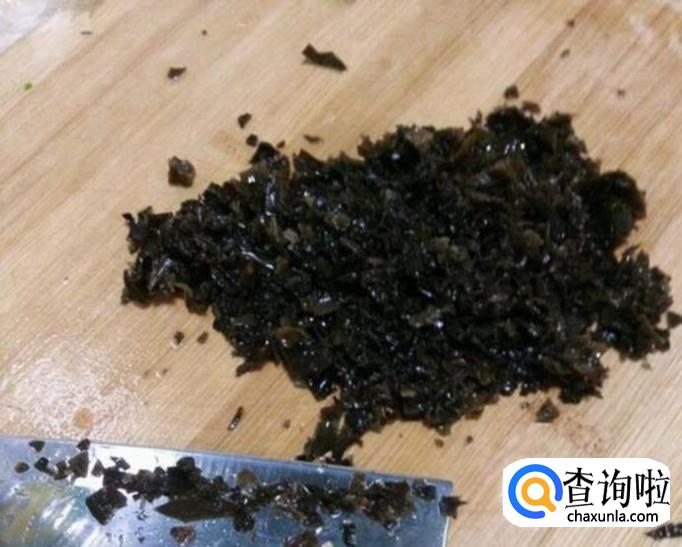 把黑木耳放60度的热水里泡发然后洗净,剁碎.切记不要太碎.