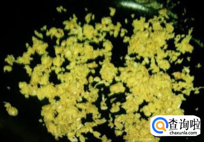 然后把鸡蛋给炒熟,在油锅里中火倒入鸡蛋,用筷子一直搅拌.