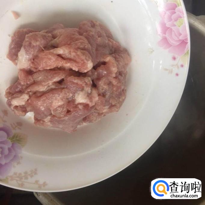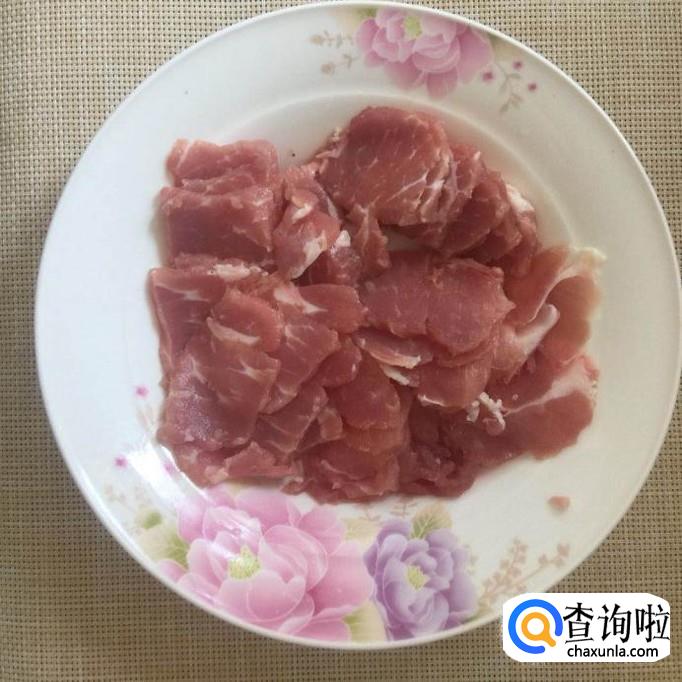 接着取适量的瘦肉洗干净,切成薄片,如下图所示。为了让切出来的肉更加的薄,小编建议大家把瘦肉放到冰箱冷冻层去冻30分钟左右,再拿出来切会比较好。