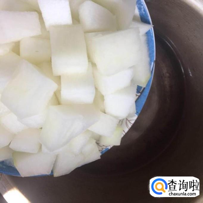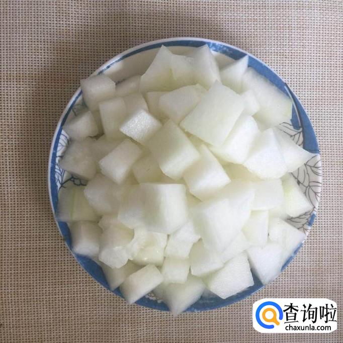 首先将冬瓜去皮切成丁,如下图所示。