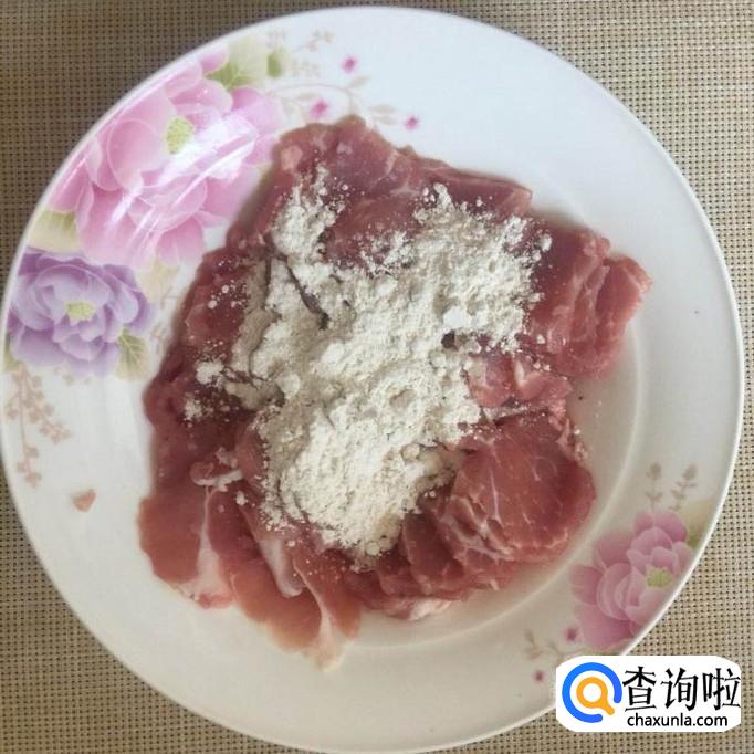 然后把瘦肉用适量的地瓜粉裹一下,如下图所示。