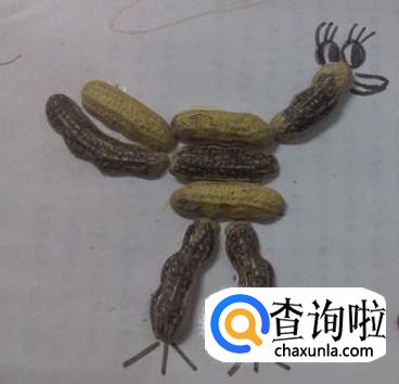 准备一张卡纸,将三个花生壳横着叠放在卡纸上,代表小鸡的身体,再选两个长点的花生壳呈八字形放在三个叠放着的花生壳下面,代表小鸡的腿,接着用画笔在腿部下端画小鸡的鸡爪。用两个长短不一的花生壳斜放在“身体”后面,代表小鸡的尾巴,然后再拿一个长点的花生壳斜放在“身体”的前方,代表小鸡的脖子,然后画上小鸡的嘴巴和眼睛就可以了。