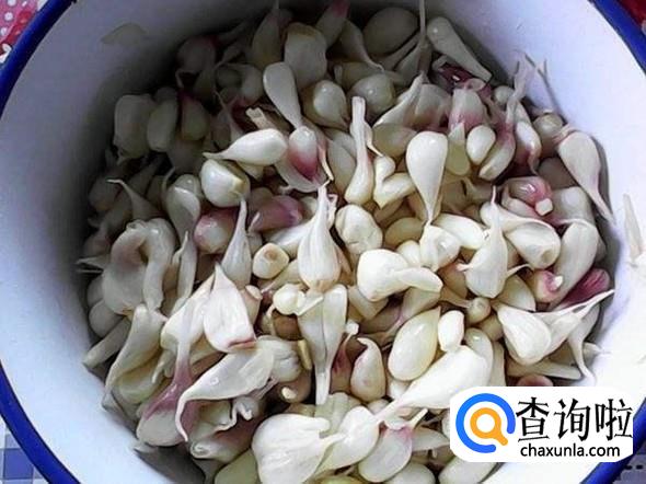 首先我们先把大蒜的外皮剥掉,尽量不要把大蒜弄烂掉,这样子既影响美观又不好吃,剥完以后挑选一下。
