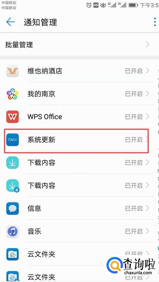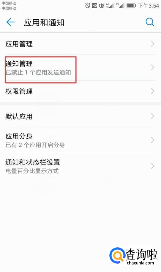 然后点击通知管理;