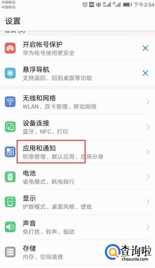 然后点击应用和通知;