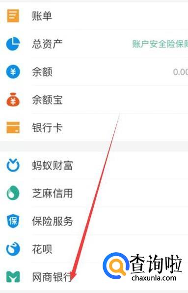 首先在支付宝我的界面找到,网商银行,然后点击进入,如下图