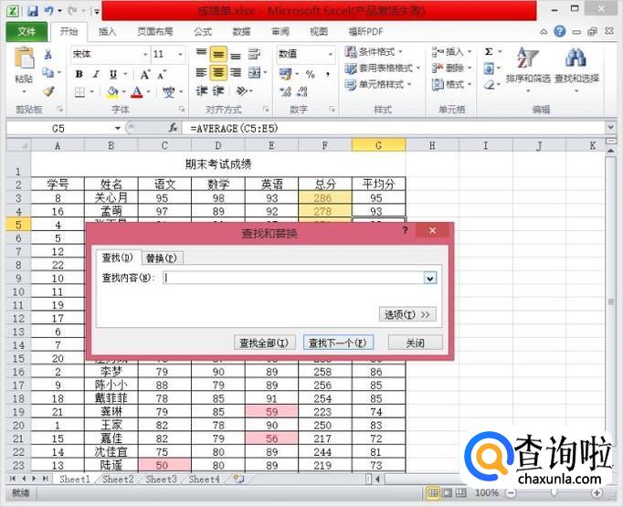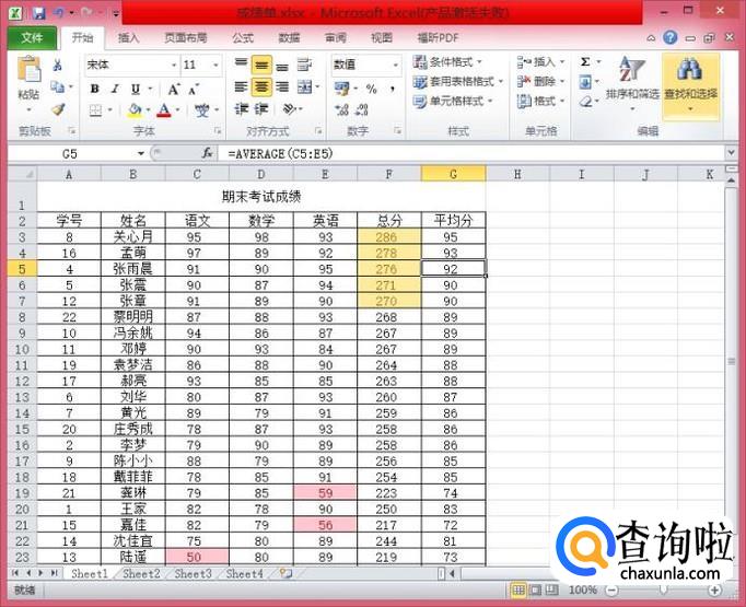 打开Excel成绩单