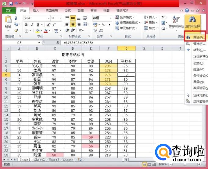 在“查找和选择“中,找到”查找“并单击