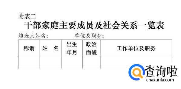 家庭主要成员填写配偶、父母、子女情况;主要社会关系填写岳父母、公婆、兄弟姐妹、伯、叔、姑、舅、姨等。家庭主要成员和主要社会关系较多的,填满此表即可,不另续页。