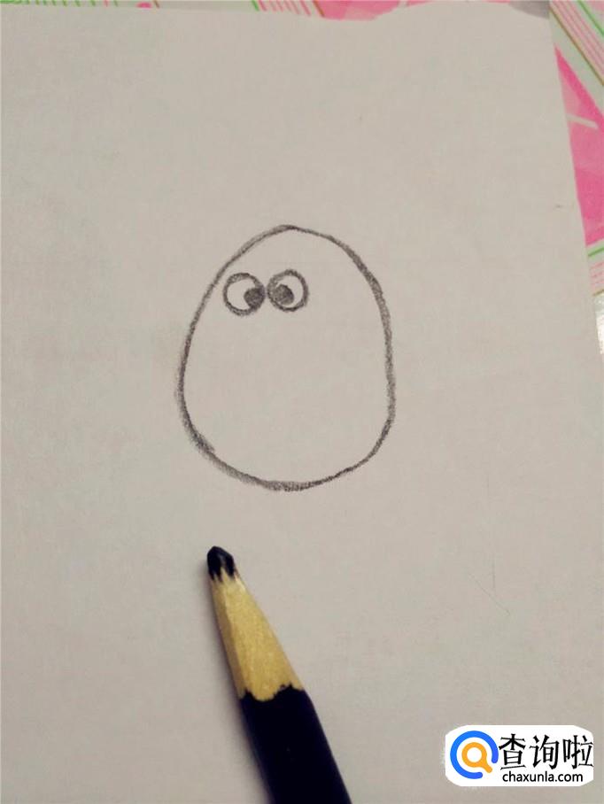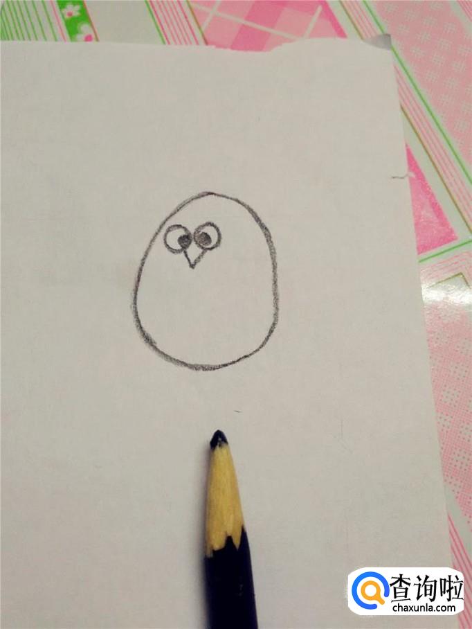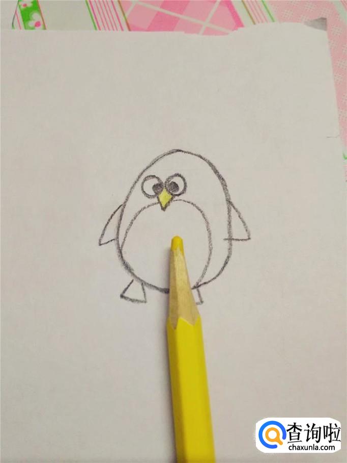 用黑笔在两只眼睛的下面画一个尖角,这是企鹅的嘴。