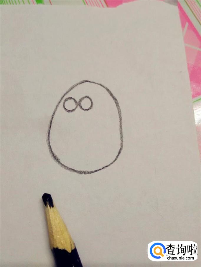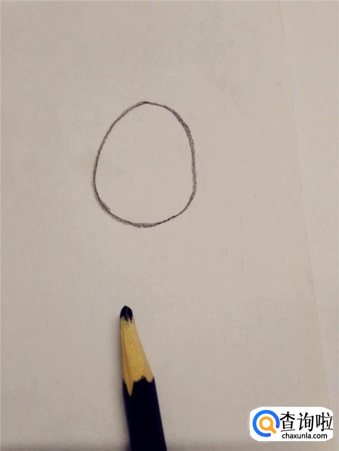 先用黑笔在纸上画一个鸡蛋的形状,当作企鹅的身体。