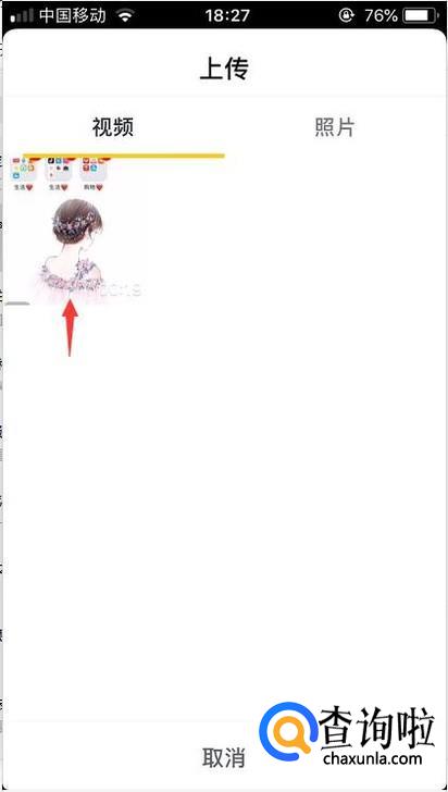 开拍的时候再选择上传的功能,然后在相册里找到我们刚刚录制的屏幕视频就完成了。