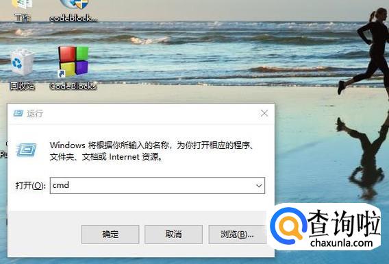 接下来我们按Win+R组合键打开运行窗口,在输入框中输入CMD命令,如下图所示