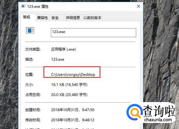 然后我们右键单击exe文件,打开属性对话框,在其中复制exe文件所在的目录,如下图所示