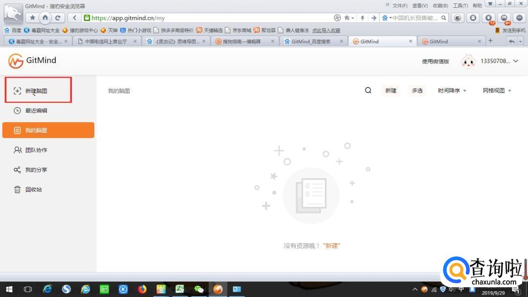 登录之后,会出现以下界面。点击“新建脑图”。