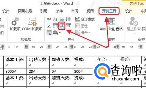 然后在下方找到“开发工具”并且勾选此项,点击确定以后返回到文档,此时我们即可在工具栏中看到“开发工具”了;