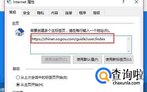 接着就会弹出intenet的属性的窗口,在红色方框的位置输入你要打开的主页的网址,如果小编输入的就是酷知网的网址。