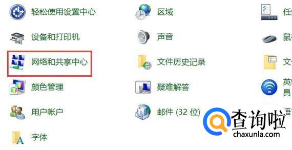 首先,我们打开电脑中的控制面板,在控制面板里选择"网络和共享中心"。