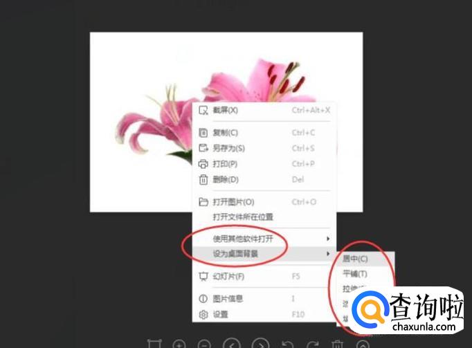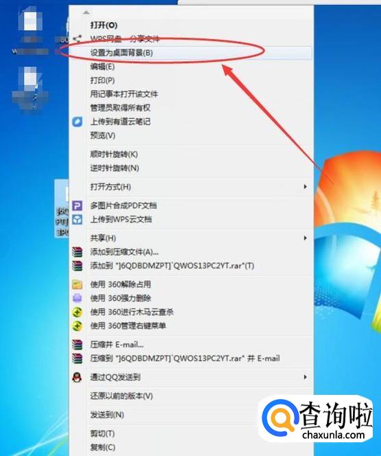 然后右击图片,选择【设置为桌面背景】,如下图所示: