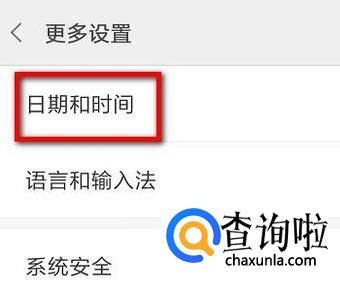 进入到更多设置界面。在这里就有一项:日期和时间