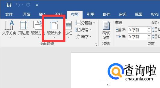 在布局菜单页中,选择“纸张大小”。