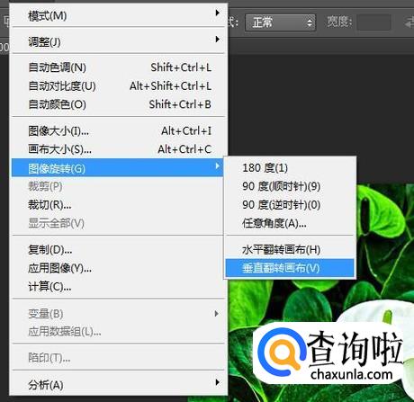 接着点击垂直翻转画布,如下图所示。这样操作完成,我们就把图像给垂直翻转了。