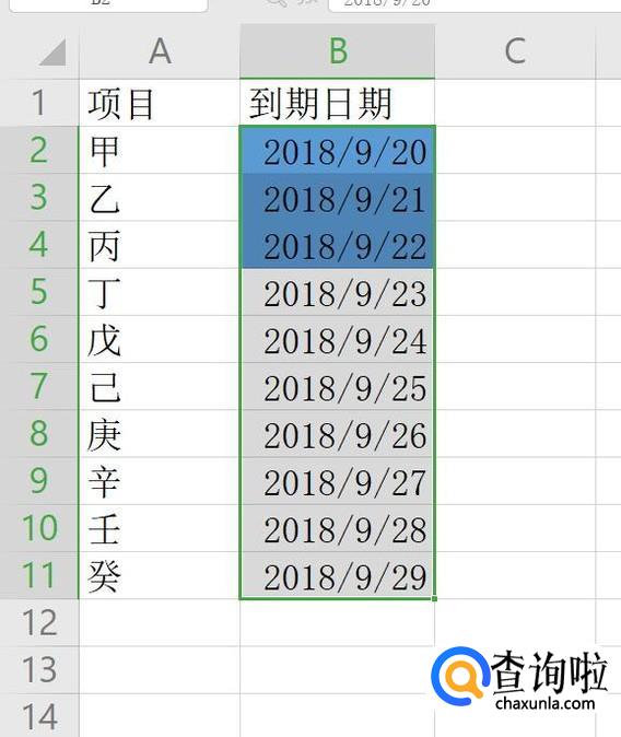 点击确定,满足条件的数据将会显示出设置的颜色,这样,就达到了到期提醒的目的