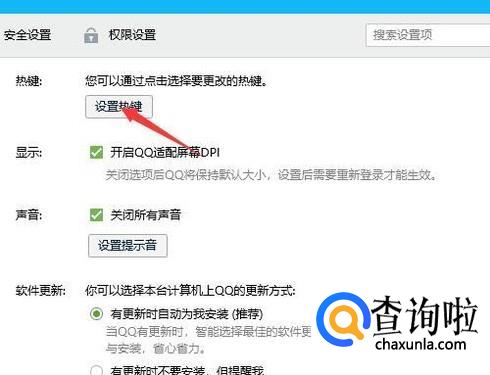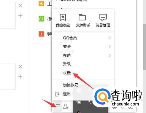 点击QQ上的设置快捷键的设置按钮,点击左下角,然后点击设置,这时候就能设置界面了。