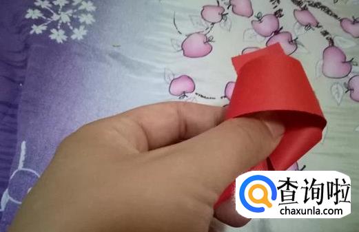 之后我们将较长的纸条沿着边缘不断折叠,最后剩一个小头,如图所示。