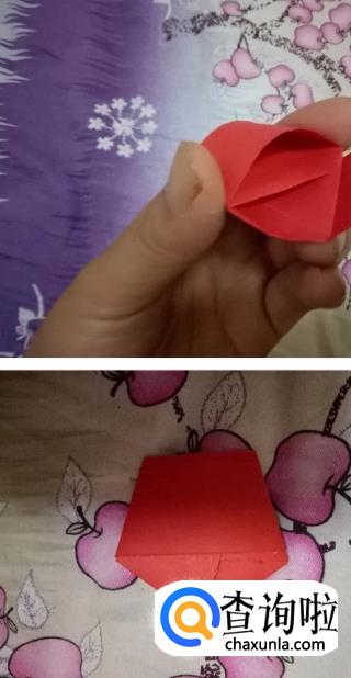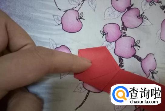 之后我们将短的纸条折叠到里面,并压平,如图所示。