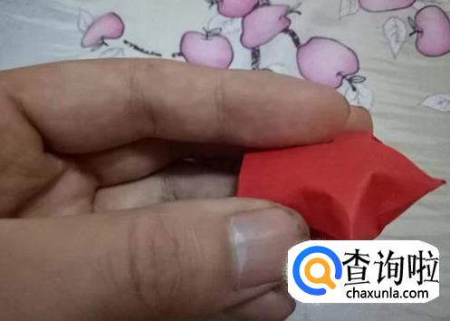 最后我们将五个角分别向内挤压,并将内部撑起来,即可折出星星,如图所示。