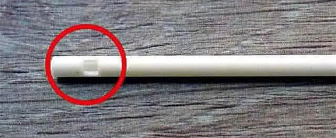 而有了这个小孔后在制作的棒棒糖的时候,糖浆就会流到塑料管里面,冷却后内外向连,这样糖球就会牢牢的固定在塑料管的顶端了,就不用担心糖球会滑落了。
