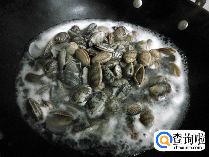 锅里放水,将花甲放进去,大火烧开,让其张开贝壳,然后捞出,这样方便拣去有泥沙的花甲。注意:煮好的花甲不要放在冷水中冲洗,那样会使肉变小变老。