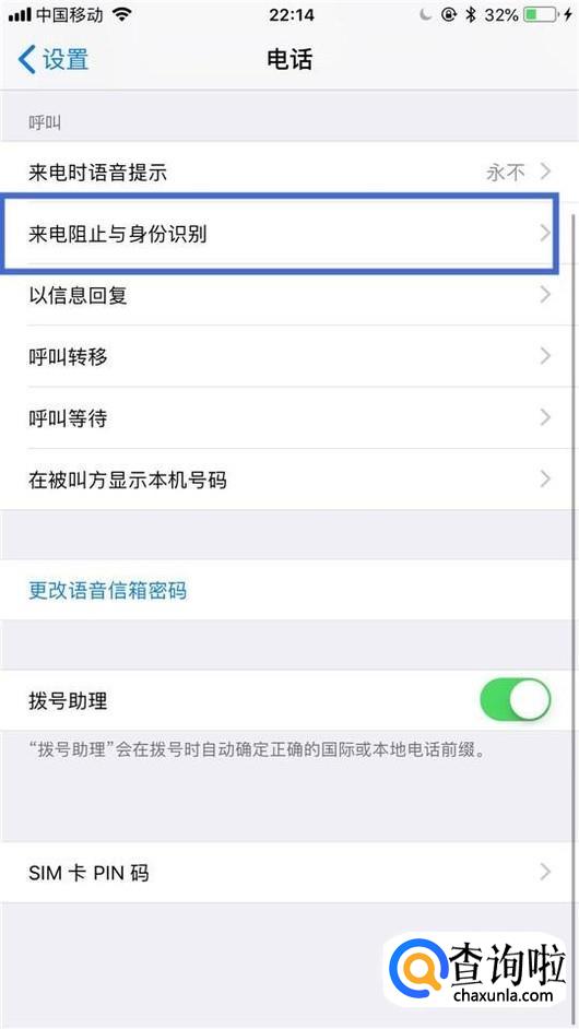 接着点击来电阻止与身份识别,如下图所示。