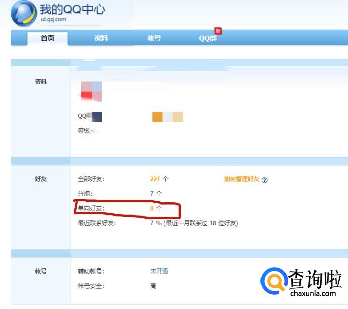 进入此页面后就可以看到好友信息,也可以看到单向好友的个数,如图所示。