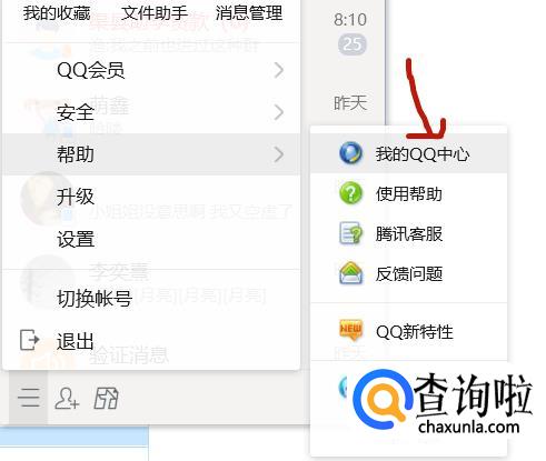选择“我的QQ中心”。