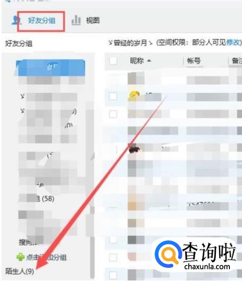 进入之后,在好友分组位置的分组下找到“陌生人”,如图所示。