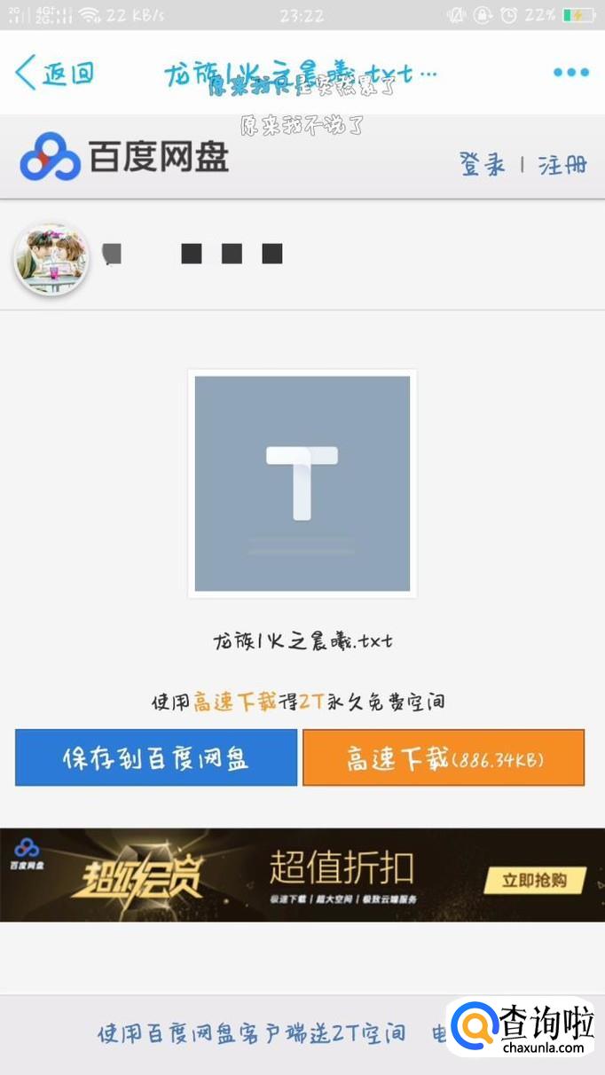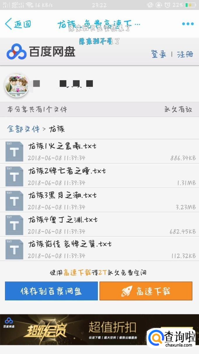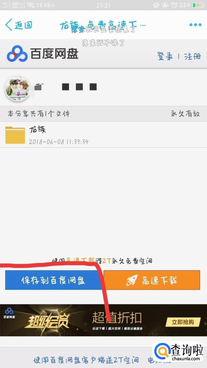 进入分享页面后,可点击下方的保存到百度云,去百度云APP下载。