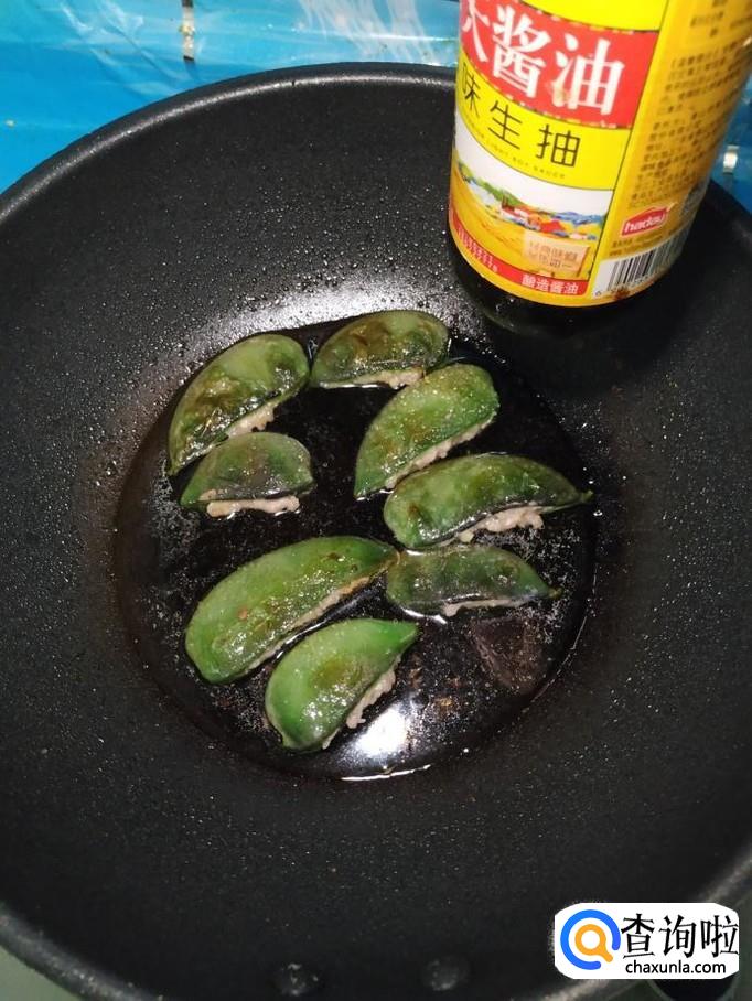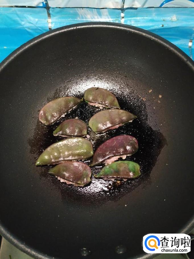 平底锅放入适量油热后,将扁豆均匀的放在锅中,小火慢煎,一面煎好之后,翻煎另一面,两面都煎至变色后,就差不多了。