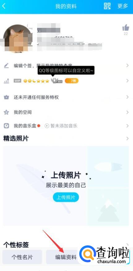 个人资料页面,点击编辑资料,进入资料管理页面。
