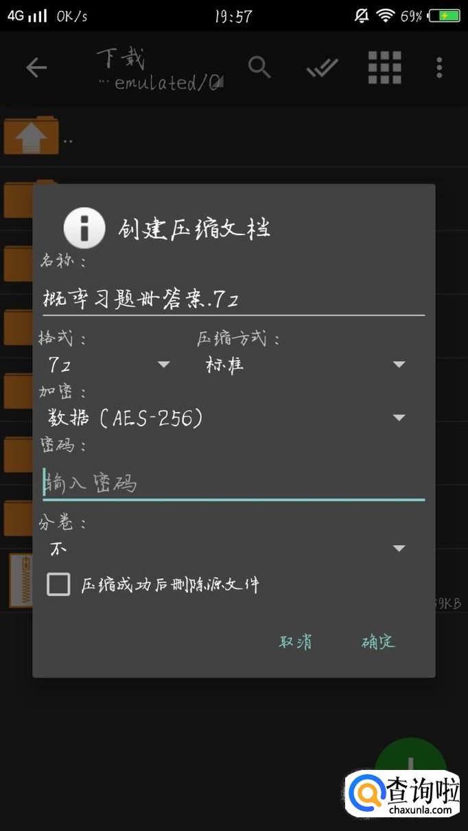 对压缩文件进行加密,长按所选文件点击“压缩”,即进入设置密码的界面。