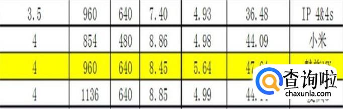 3.5英寸到4英寸的机型代表为iPhone4,iPhone4s,小米3等